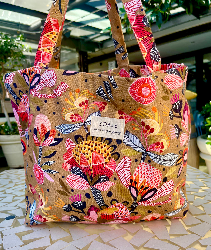 Introducing Zoaje's Limited Edition Tote Bag: a fusion of artistry and practicality. Adorned with Australian native flowers print that celebrates the beauty of nature, this tote brings a sense of summer charm. Its spacious design, complete with a cotton beige lining, ensures that it's not just a fashion statement but also a functional accessory. Perfect for the woman on the go, it effortlessly accommodates a laptop while adding a touch of global flair to any outfit.