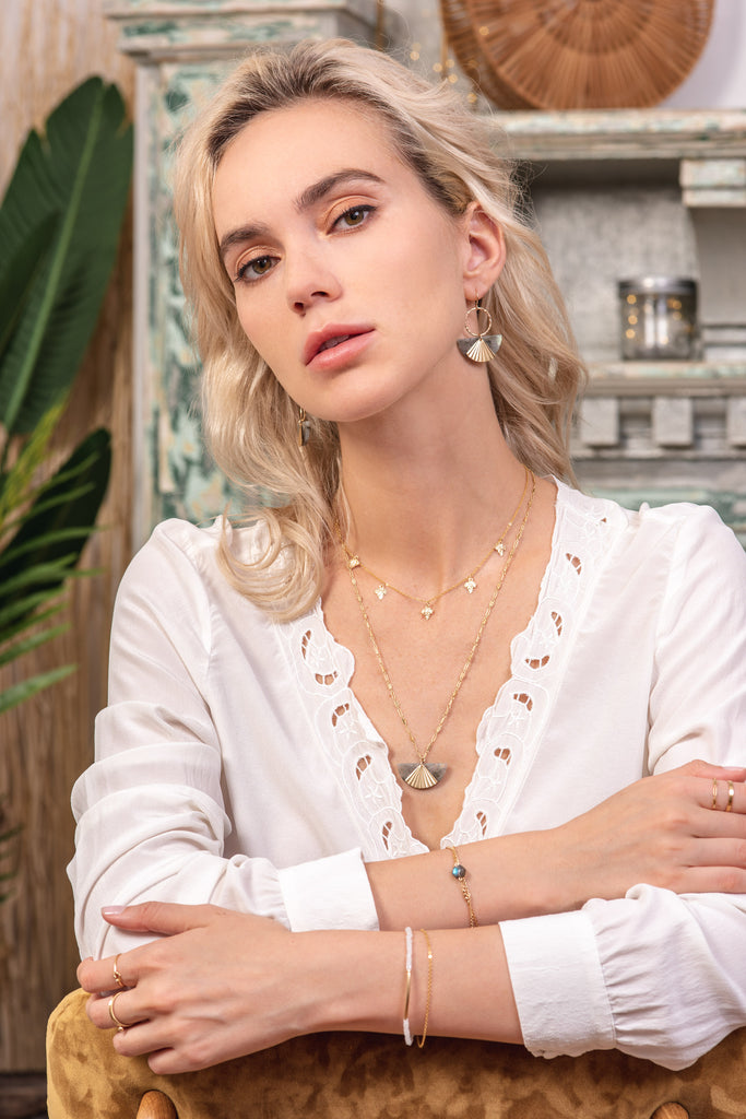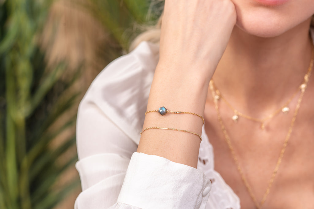 We use 14k Gold-Filled imported from the USA which contains a minimum of 5% of 14k solid Gold, is water resistant, cannot induce any allergy and can last a lifetime if stored and used with good care. Unlike Gold Plated jewelry which only contains around 0.05% 14k solid Gold, Gold-filled jewelry doesn’t tarnish or loose its color.