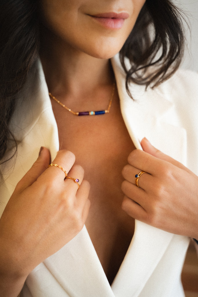 Some of our 14K gold-filled rings may show a tiny area (around 1–1.5mm) with a slightly silvery tone at the bottom. This is completely normal on gold-filled jewellery that has been soldered, as the heat used to join the metal can cause a subtle change in colour at the joint.