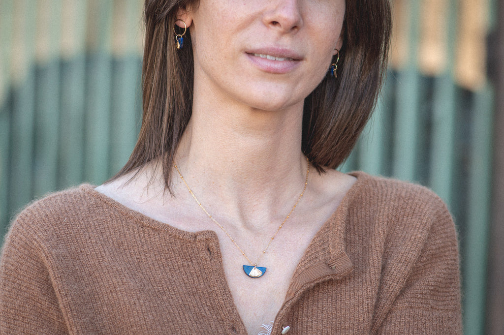 As light drifts across its surface, it recalls sunlight gliding over Burmese waters at dusk — a quiet contrast of blue and gold that adds a subtle, distinctive radiance to daily look.