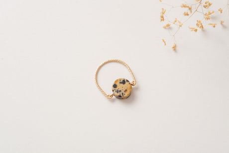 Embody boldness and courage with our PARIS ring in 14k gold-filled and natural Dalmatian Jasper gemstones.